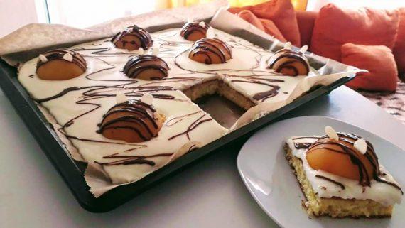 Η σημερινή μας συνταγή είναι, ένα γλυκό ταψιού με αφράτο κέικ, ελαφριά κρέμα, με άνθος αραβοσίτου και μασκαρπόνε. Είναι διακοσμημένο με κομμάτια, κομπόστας ροδάκινο (ή και βερίκοκο) και λιωμένη κουβερτούρα ετσι ωστε να μοιάζουν με μελισσούλες.