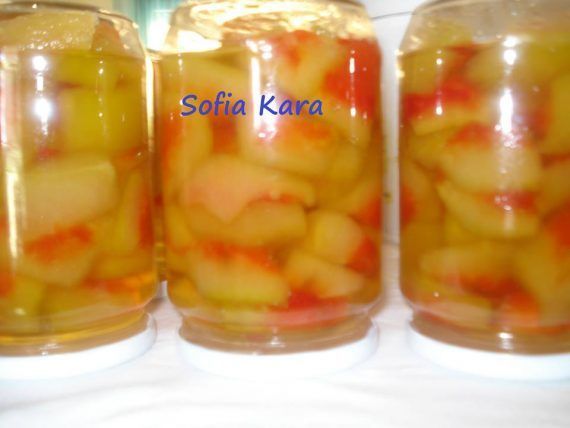 Έπλυνα καλά τα βάζα και τα καπάκια, τα έβαλα στον φούρνο για να αποστειρωθούν. Όπως είναι ζεστό το γλυκό, το βάζω σε ζεστά βάζα, σφίγγω καλά τα καπάκια και τα αναποδογυρίζω. Όταν κρυώσουν, τα γυρνάω κανονικά.