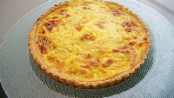 Υλικα 1 σφολιατα, 100 γρ. μπεικον σε κυβους. 80 γρ.ζαμπον σε κυβους, 1 φλυτζανι τσαγιου τριμμενα τυρια (γραβιερα , παρμεζανα κ.α.), 250 ml κρεμα γαλακτος , 1/2 φλυτζανι τσαγιου γαλα εβαπορε , 3 αυγα, αλατι , πιπερι μοσχοκαρυδο.