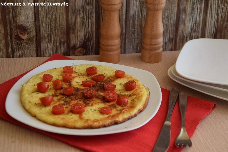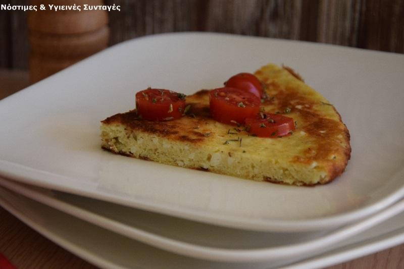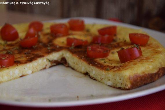3 αυγά 40 γρ ελαιόλαδο 40 γρ αλεύρι βρώμης (νιφάδες βρώμης αλεσμένες στο μπλέντερ) 100 γρ φέτα 50 γρ τριμμένη γραβιέρα (χρησιμοποίησα Νάξου) 80 γρ γιαούρτι (χρησιμοποίησα κατσικίσιο) αλάτι (χρησιμοποίησα θαλασσινό) φρεσκοτριμμένο πιπέρι θυμάρι ντοματίνια