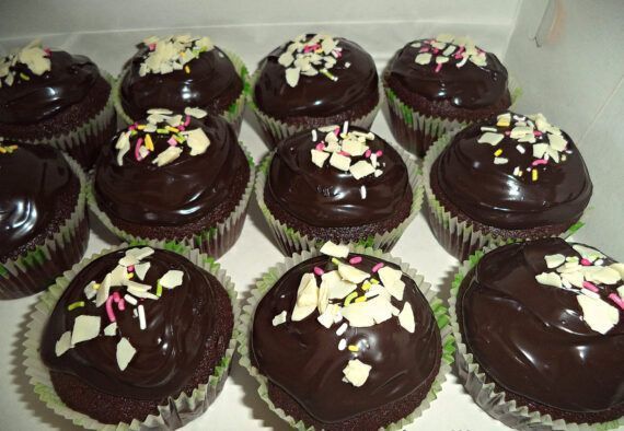 Εκτέλεση για τα σοκολατένια muffins με γλάσο σοκολάτας