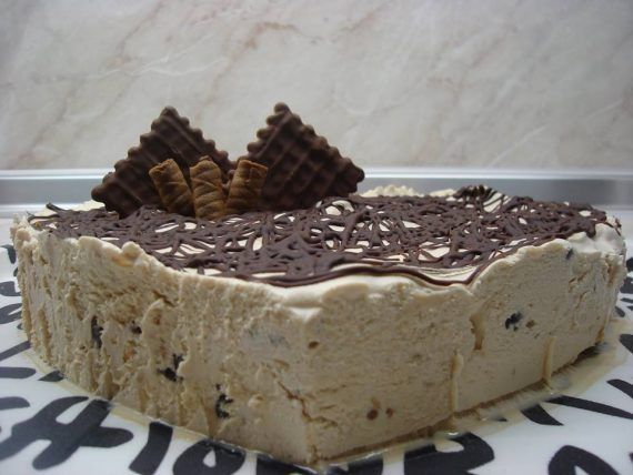 Τι κάνουμε Χτυπάμε στο μίξερ την κρέμα γάλακτος ,προσθέτουμε το ζαχαρούχο και το εβαπορέ (Τα γάλατα να είναι κρύα) Χτυπάμε καλά να γίνει κρέμα. Δυαλύουμε τον καφέ σε 2 κουταλιές γάλα και το προσθέτουμε μέσα στην κρέμα. Ανακατεύουμε καλά. Τέλος προσθέτουμε τα μπισκότα (σπασμένα) καί τις σταγόνες σοκολάτα Αδειάζουμε σε ένα τσέρκι. Λιώνουμε την κουβερτούρα στον φούρνο μικροκυμμάτων και στολίζουμε την τούρτα. Την βάζουμε στην κατάψυξη και περιμένουμε με λαχτάρα να παγώσει. Για αυτή την τούρτα έβαλα τη μισή κρεμα,με την υπόλοιπη έφτιαξα σαντουιτσάκια παγωτού!!