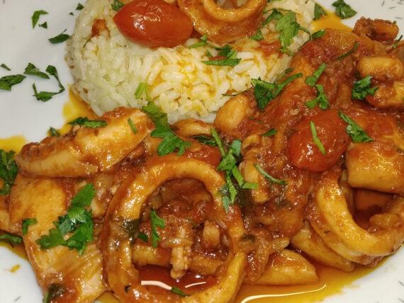 Εκτέλεση για την συνταγή της Τετάρτης: Καλαμαράκια κοκκινιστά με ρύζι