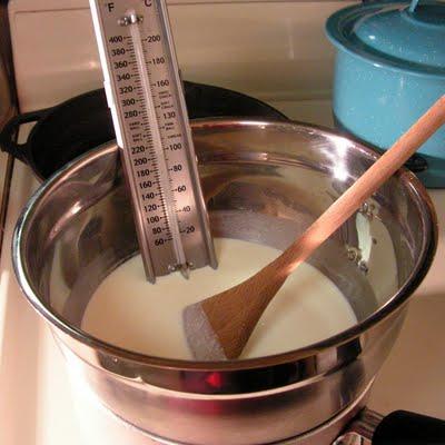 Ζεσταίνουμε την κρέμα γάλακτος, ανακατεύοντας συχνά μέχρι να φτάσει