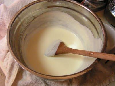 ανακατεύοντας απαλά, μέχρι να αρχίσει να πήζει κρέμα.