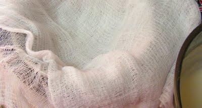 Εν τω μεταξύ, ετοιμάστε ένα κόσκινο με τέσσερα στρώματα βρεγμένο τουλπάνι