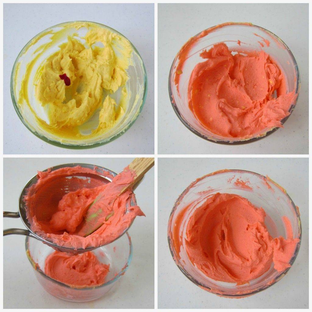 Λιώστε τους κρόκους χρησιμοποιώντας ένα πιρούνι και στην συνέχεια προσθέστε μερικές σταγόνες από την χρωστική τροφίμων και ανακατέψτε μέχρι να πάρει ομοιόμορφο χρώμα.
