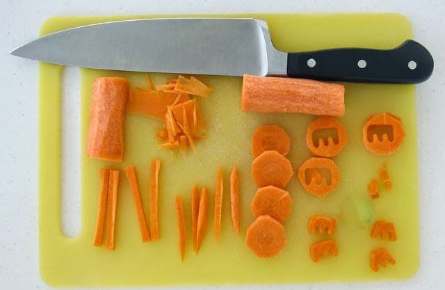 Κόψτε τα καρότα στα σχήματα της φωτογραφίας.