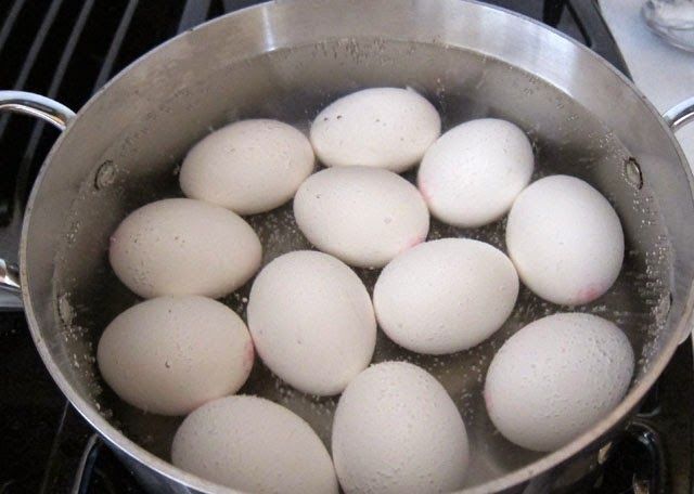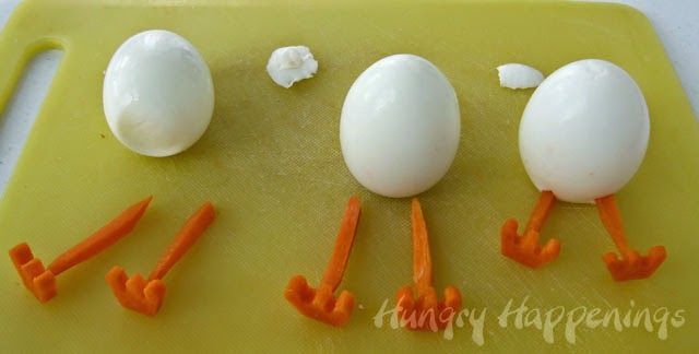 Τοποθετήστε δύο πόδια καρότου σε κάθε βραστό αυγό.