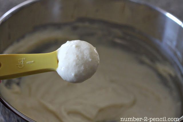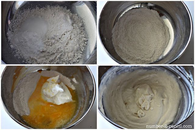 Ανακατέψτε το αλεύρι, τη ζάχαρη, το μπέικιν πάουντερ, τη σόδα και το αλάτι σε ένα μεγάλο μπολ. Προσθέστε το γιαούρτι, το βούτυρο, και ελαφρά χτυπημένο το αυγό στο ίδιο μπολ. Προσθέστε γάλα για να γίνει κουρκούτι ανακατεύοντας έως και 1-2 κουταλιές της σούπας ανάλογα με το πάχος του γιαουρτιού.