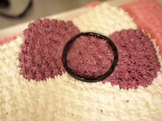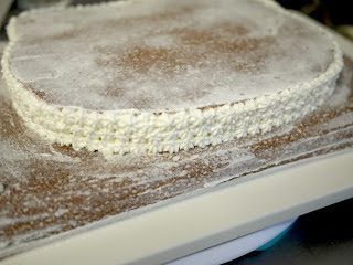 Σε μπολ βάλτε ένα μέρος βουτυρόκρεμας και ρίχνοντας μερικές σταγόνες κόκκινου χρώματος ζαχαροπλαστικής μετατρέπετε την λεύκη βουτυρόκρεμα σε ροζ . Διακοσμείστε με αυτό το σημείο που αφήσατε πριν κενό σχηματίζοντας έτσι την κορδέλα της γατούλας καθώς και την βάση της τούρτας.