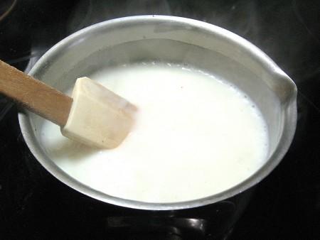 Χτυπάμε σε 1 φλιτζάνι γάλα, 1/4 κουταλάκι του γλυκού αλάτι και μια μικρή πρέζα μοσχοκάρυδο τριμμένο