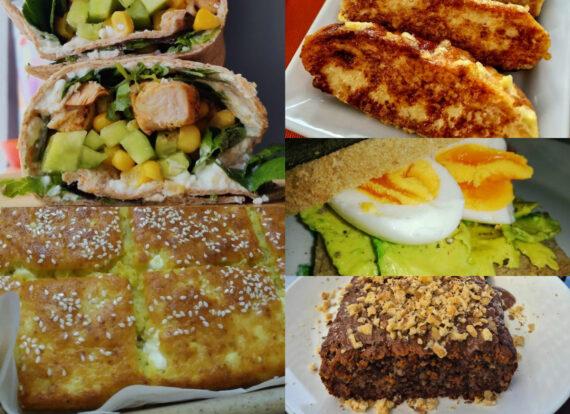 • Ζεστό τοστ με ψωμί ολικής άλεσης ή με ψωμί γερμανικού τύπου (dinkel) (με τυρί και κοτόπουλο/γαλοπούλα/αυγό βραστό και πολύχρωμα λαχανικά)