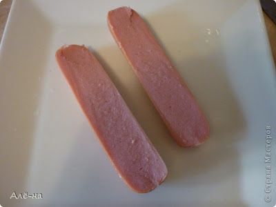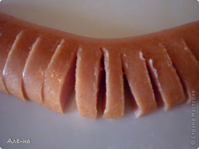 Κόβουμε το λουκάνικο κατά μήκος.
