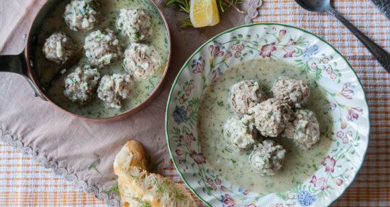 Συστατικά 500 γρ. μοσχαρίσιος κιμάς 150 γρ. ρύζι γλασέ 1 μέτριο κρεμμύδι, ψιλοκομμένο 1 σκ. σκόρδο ψιλοκομμένη 1 κ.σ. άνηθο, ψιλοκομμένο ½ φλυτζάνι ελαιόλαδο φλούδες λεμονιού 1 – 2 φύλλα δάφνης 1 κύβο ζωμό κότας νερό αλάτι πιπέρι Για τη σάλτσα 200 γρ. γιαούρτι 2 – 3 κ.σ. ελαιόλαδο 3 κ.σ. άνηθο λίγο ψιλοκομμένο δυόσμο Εκτέλεση Ετοιμάζουμε τα γιουβαρλάκια μας ανακατεύοντας το κρεμμύδι, το σκόρδο, το ρύζι, τον κιμά και 2 κ.σ. ελαιόλαδο. Προσθέτουμε και λίγο ψιλοκομμένο άνηθο, 2 κ.γ. αλάτι και αρκετό πιπέρι. Πλάθουμε μικρά μπαλάκια και τα βάζουμε σε μια κατσαρόλα αφήνοντας λίγο κενό μεταξύ τους. Προσθέτουμε το φύλλο δάφνης και 3 – 4 φλούδες από ένα λεμόνι. Στη συνέχεια, ρίχνουμε ένα ζωμό κότας και καλύπτουμε με νερό τα γιουβαρλάκια μας (περίπου 2 δάχτυπα πιο πάνω από τα γιουβαρλάκια). Βάζουμε την κατσαρόλα στη φωτιά και βράζουμε για περίπου 30-40 λεπτά ανάλογα το μέγεθός τους. Αφού βράσουν, βάζουμε 3 κ.σ. από το ζωμό που έχουν βγάλει τα γιουβαρλάκια μας σε ένα μπολ. Προσθέτουμε λίγο ελαιόλαδο και το γιαούρτι. Χτυπάμε με το ραβδομπλέντερ μέχρι να ομογενοποιηθεί το μείγμα. Ρίχνουμε το ζουμί πίσω στην κατσαρόλα με τα γιουβαρλάκια μαζί με λίγο ψιλοκομμένο άνηθο και ανακατεύουμε. Σερβίρουμε τα γιουβαρλάκια σε μπολ μαζί με το νόστιμο ζουμάκι και ψιλοκομμένο δυόσμο.