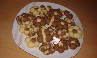 125 γρ βουτυρο σε θερμοκρασια δωματιου 2/3 φλυτζ αχνη 1/2 κγ λαδι 3 κσ κορν φλαουρ 1,5 φλυτζ αλευρι , ισως και λιγο παραπανω 2 κ γ κακαο Βαζουμε σε ενα μπολ τα υλικα μας, εκτος του κακαου. Θελουμε να εχουμε μια μαλακη ζυμη,να μην τριβει και οταν κανουμε τα μικρα μπαλακια να μην ανοιγουν. Απο την ποσοτητα του αλευρου, κραταμε 2 κγ, δεν το βαζουμε. Χωριζουμε τη ζυμη στα δυο , στο ενα προσθετουμε το κακαο και στο αλλο τα δυο κγ που κρατησαμε. Πλαθουμε μικρα μπαλακια και φτιαχνουμε τις μαργαριτες..ή βαζοντας για κεντρο μια καφε και γυρω γυρω λευκες ή το αντιθετο!! Ψηνουμε στους 180 β για περιπου 1 τεταρτο.