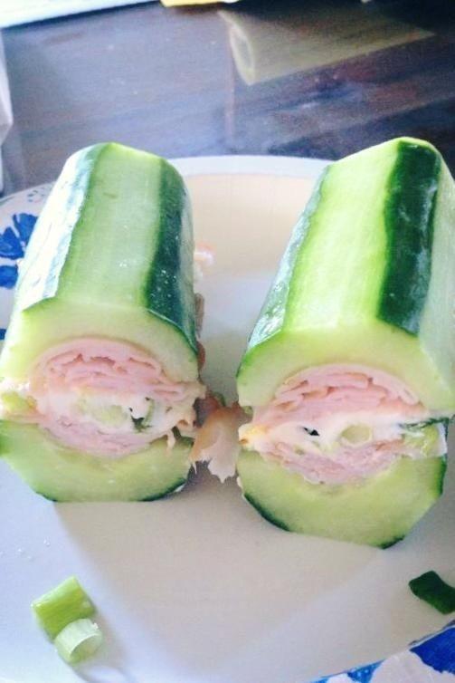 Κόβετε το αγγούρι προσεκτικά κάτα μήκος, αφαιρείτε με ένα κουταλάκι λίγη από τη σάρκα του αγγουριού, απλώνετε τυρί κρέμα και διπλώνετε τις φέτες από τη γαλοπούλα στη μια πλευρά του αγγουριού. Από πάνω κλείνετε το σάντουιτς με την άλλη πλευρά του αγγουριού. Για να γίνει πιο κατανοητή η επεξήγηση δείτε την εικονιζόμενη φωτογραφία.