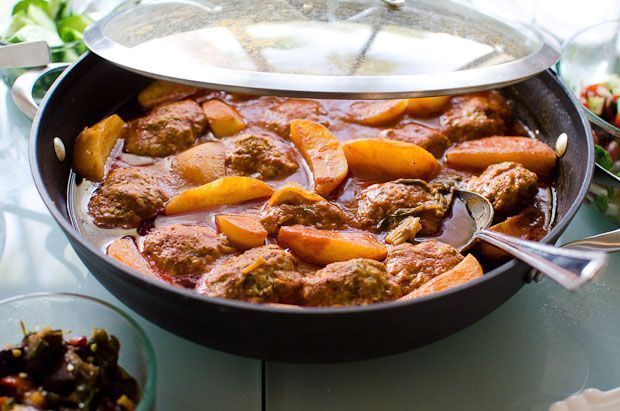 Ετοιμάζετε το μείγμα κιμά για τα κεφτεδάκια σύμφωνα με τις οδηγίες της συνταγής, φροντίζοντας η ζύμη να γίνει ελαφρώς σφιχτή διότι θα βράσουν στη κατσαρόλα. Τα τηγανίζετε ελαφρώς απ” όλες τις πλευρές για πολύ λίγο απλά να “θωρακιστούν”. Τα αφήνετε στην άκρη. Κόβετε τις πατάτες κυδωνάτες. [*]