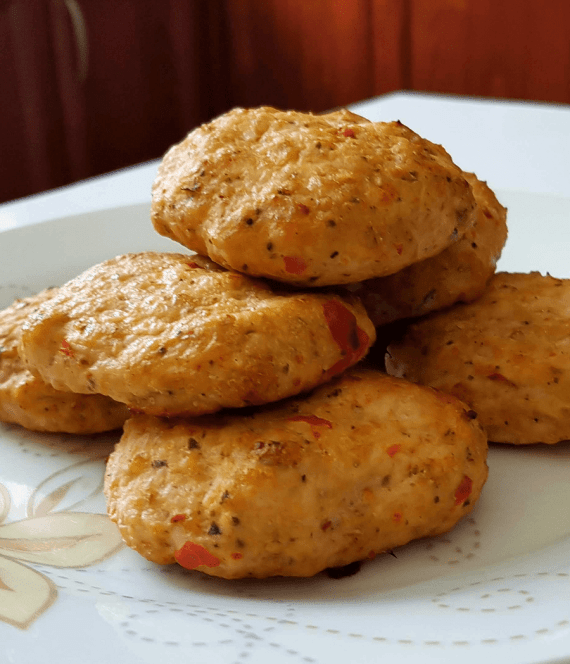 -1κ. κιμά γαλοπούλας -3κτσ. μαϊντανό -1 μεγάλο κρεμμύδι ξερό -1 κόκκινη πιπεριά -2 ασπράδια αυγού -4κτσ. νιφάδες βρόμης -αλάτι -πιπέρι -ρίγανη -1/2κτγ. σκόνη σόδας -1κτγ. χυμό λεμονιού