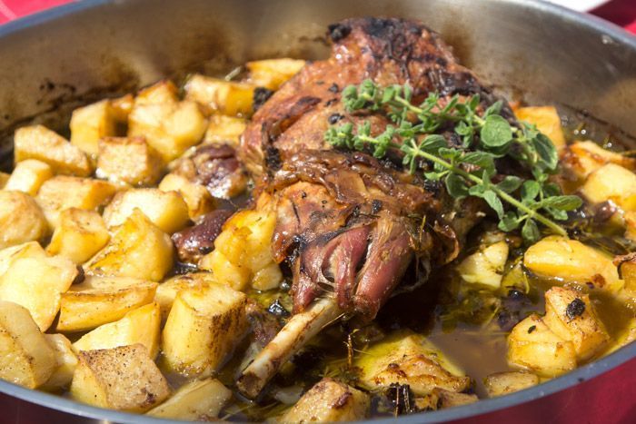 Η παραπάνω διαδικασία μειώνει τα λίπη του αρνιού δημιουργώντας ένα εξαιρετικά νόστιμο, κριτσανιστό εξωτερικά και ζουμερό εσωτερικά κρέας. Αν αντί για αρνί χρησιμοποιήσετε κατσίκι, που έχει λιγότερο λίπος, ο συνολικός χρόνος πρέπει να μειωθεί κατά περίπου 30 λεπτά, ώστε το κρέας να μην στεγνώσει. Σ’ αυτή την περίπτωση χρησιμοποιήστε τον φούρνο κανονικά χωρίς αέρα. Επίσης, αν κάνετε τις πατάτες πιο μικρές, βάλτε τες στο ταψί πιο αργά.
