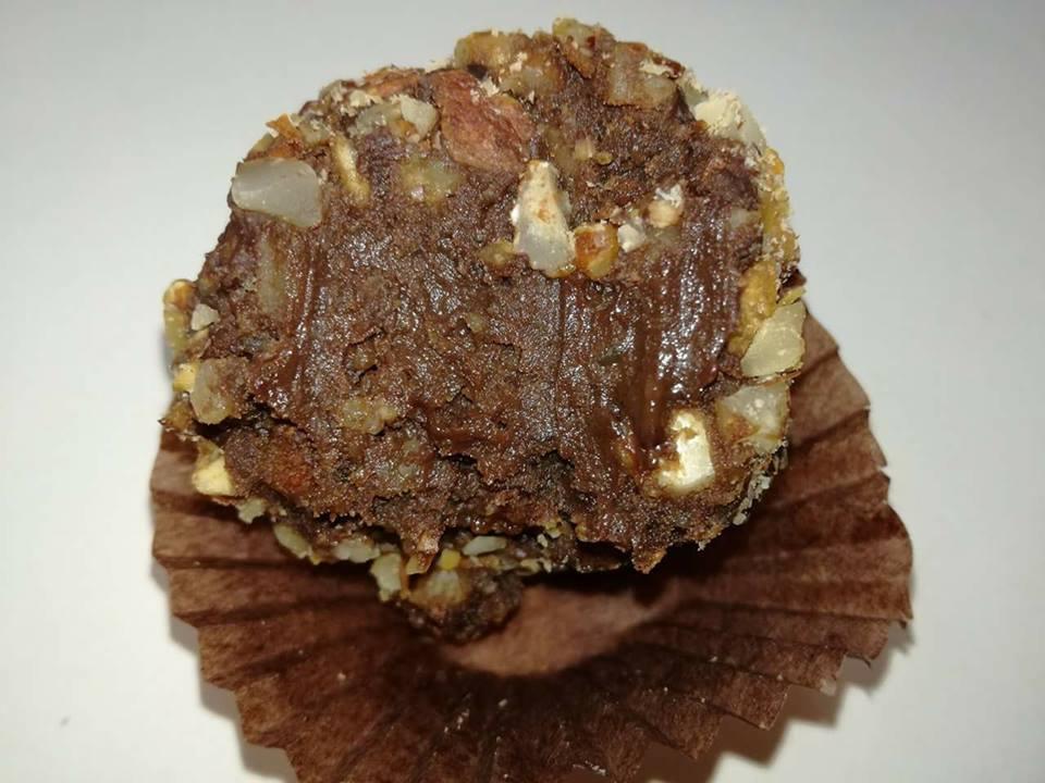 • Μια συσκευασία κρέμα καρύδας (400 ml) • 400 γρ. σοκολάτα κουβερτούρα • 1 κ.γλ. ζάχαρη άχνη • 1-2 σταγόνες υγρής βανίλιας • 1- 2 κ.σ. πούδρα αμυγδάλου ή τριμμένη φρυγανιά • 1-2 κ.σ. φουντούκια, αμύγδαλα ή οποιοδήποτε άλλο ξηρό καρπό της αρεσκείας μας καβουρδισμένα και χοντροκομμένα και επιπλέον για επικάλυψη • Φλούδες σοκολάτας, φιλέ αμυγδάλου για επικάλυψη