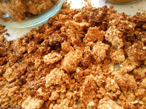 Simple peanut butter granola which you can Improvise. Add nuts or dried fruit, replace peanut butter with some vegetable oil, put coconut or chocolate pieces. Homemade granola cereal that children and adults will love.