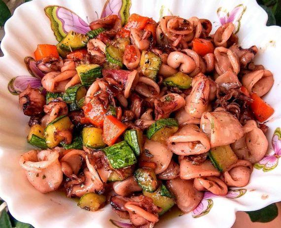 Εκτέλεση για τα καλαμαράκια σωτέ με κολοκυθάκια