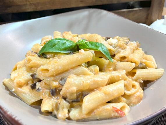 Καλοκαιρινή μακαρονά με μελιτζάνες και φέτα που μοσχοβολάει Ελλάδα και Μεσόγειο. Δοκιμάστε την!