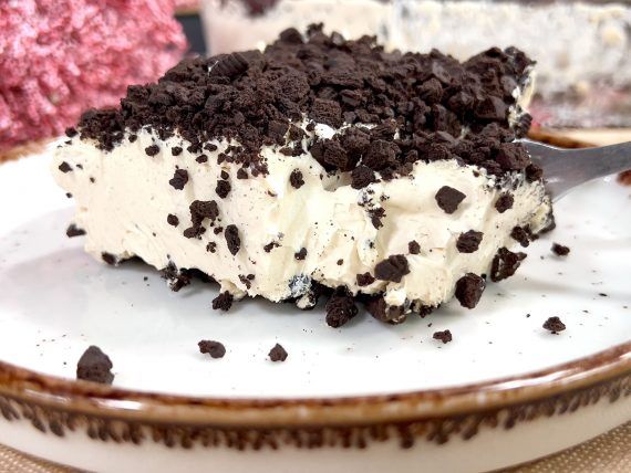 450 g chocolate biscuit crumbs 500 g canned thick cream 400 g dulce de leche ——————————————————— 27×21 cm