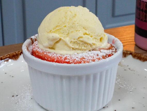 Συνταγή για σουφλέ φράουλα με παγωτό από τον Δημήτρη Μιχαηλίδη για ένα πιο ελαφρύ γευστικά σουφλέ σε σύγκριση με το σουφλέ σοκολάτας, με μόλις 6 υλικά.