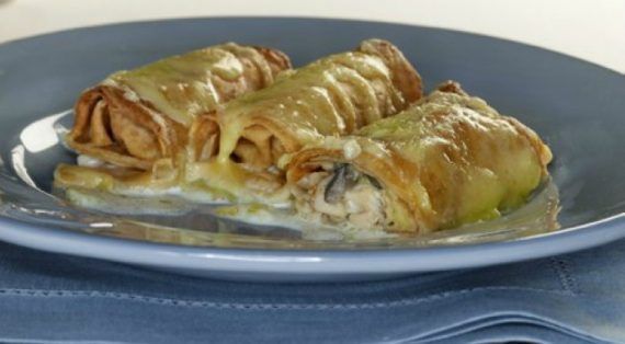 Για τη γέμιση: 150 γρ. Flora Soft με βούτυρο 5 φιλέτα από στήθος κοτόπουλου κομμένα σε μικρούς κύβους 350 γρ. μανιτάρια φρέσκα κομμένα σε φέτες 1Knorr «Σπιτικός» Ζωμός Κότας 1 ποτήρι κρασί λευκό ½ κρεμμύδι ξερό ψιλοκομμένο Αλάτι – πιπέρι 500 ml κρέμα γάλακτος 30% λιπαρά 400 γρ. τυρί γκούντα τριμμένο 1 αυγό χτυπημένο 3 κουτ. σούπας κορν φλάουρ μαζί με 2 κουτ. σούπας νερό
