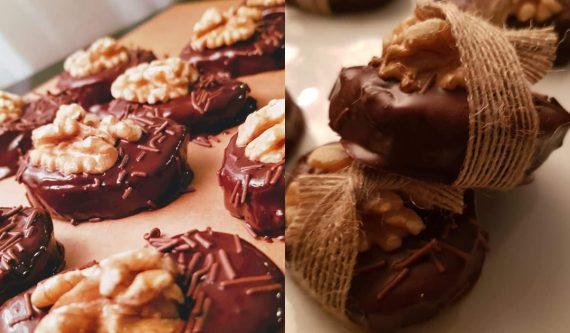 Λιώνουμε σε μπεν μαρί την κουβερτούρα. Στην συνέχεια, βουτάμε το παγωμένο μείγμα στην κουβερτούρα. Βάζουμε τις καριόκες σε ένα ταψί με λαδόκολλα και τις αφήνουμε να παγώσουν στο ψυγείο. Αφού σταθεροποιηθεί η κουβερτούρα απολαμβάνουμε.