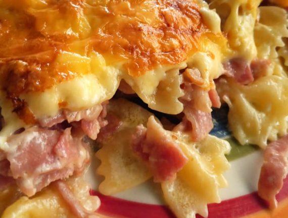 Συνταγή για καρμπονάρα φούρνου για το Πασχαλινό τραπέζι. Μια καρμπονάρα φούρνου σα σουφλέ με φιογκάκια πολύ νόστιμη