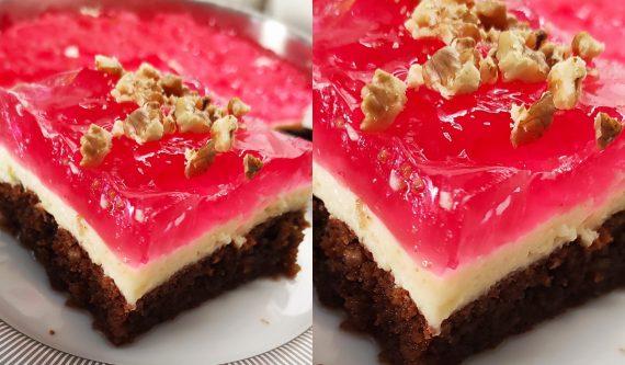 Καρυδόπιτα με κρέμα και ζελέ – Ένα δροσιστικό σιροπιαστό γλυκάκι για όλη την οικογένεια.
