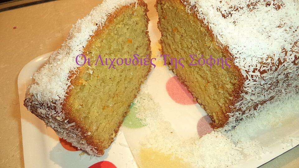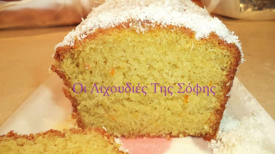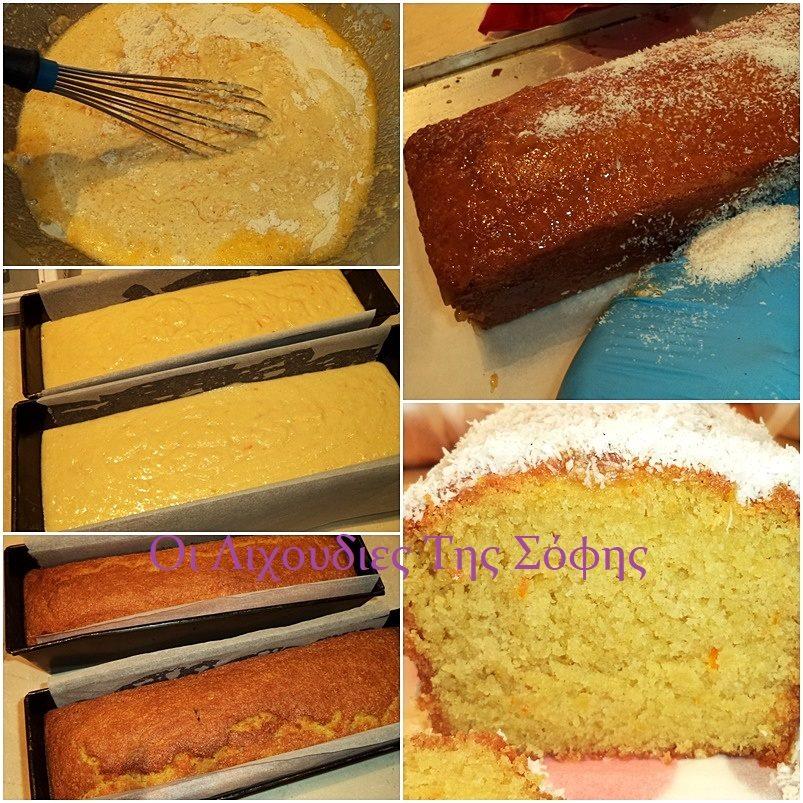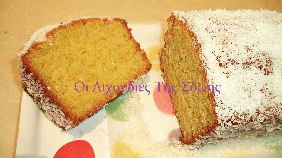 ΥΛΙΚΑ (ΚΟΥΠΑ ΜΕΖΟΥΡΑ ΤΩΝ 200 ml) ΤΑΨΑΚΙ 25Χ30 3 ΚΟΥΠΕΣ ΑΛΕΥΡΙ ΓΙΑ ΟΛΕΣ ΤΙΣ ΧΡΗΣΕΙΣ 1 ΚΟΥΠΑ ΣΙΜΙΓΔΑΛΙ ΨΙΛΟ 2 ΚΟΥΠΕΣ ΖΑΧΑΡΗ 1 1/2 ΚΟΥΠΑ ΚΑΛΑΜΠΟΚΕΛΑΙΟ 1 ΚΟΥΠΑ ΙΝΔΟΚΑΡΥΔΟ ΤΡΙΜΜΕΝΟ 1 ΚΟΥΠΑ ΦΥΣΙΚΟ ΧΥΜΟ ΠΟΡΤΟΚΑΛΙ 1 ΦΑΚΕΛΑΚΙ ΜΠΕΙΚΙΝ ΞΥΣΜΑ ΑΠΟ 2 ΠΟΡΤΟΚΑΛΙΑ 1 ΒΑΝΙΛΙΑ ΚΑΨΟΥΛΑΚΙ (εγω έβαλα 2) 1 ΣΟΔΑ ΑΝΑΨΥΚΤΙΚΟ (330 ml) ΕΚΤΕΛΕΣΗ Ρίχνω όλα τα υλικά σ’ένα μεγάλο μπολ και τα ανακατεύω μ ένα σύρμα.Αδειάζω το μίγμα σε ταψί με λαδόκολα και ψήνω στους 180 50-55 λεπτά. Εγώ έφτιαξα μιάμισι δόση από τη συνταγή και μου βγήκαν 2 μακρόστενες φόρμες.Επίσης άλειψα εξωτερικά τα κέικ με μαρμελάδα και τα πασπάλισα με ινδοκάρυδο.