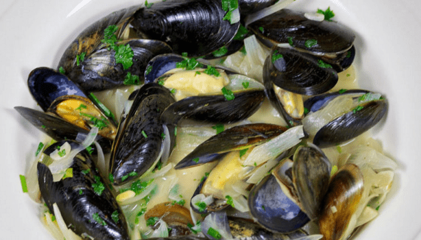 5) Μύδια αχνιστά με σάλτσα κρασιού
