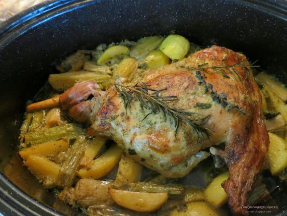 Η λαδόκολλα είναι απαραίτητη ανάμεσα στη γάστρα και το καπάκι, για να μην φεύγουν οι υδρατμοί… γιαυτό και δεν βάζουμε άλλα υγρά στο ταψί, δεν χρειάζονται…φτάνουν αυτά της μαρινάδας… Ψήνουμε 1 ώρα στους 200 βαθμούς στον αέρα μετά χαμηλώνουμε στους 170 βαθμούς και ψήνουμε άλλη 1 ώρα στο τέλος βγάζουμε το καπάκι και τη λαδόκολλα και ψήνουμε άλλα 10-15 λεπτά για να ροδίσει το κρέας όσο θέλουμε!!!
