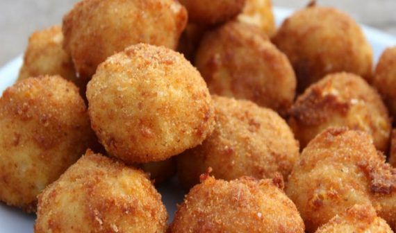 Με ένα κουτάλι παίρνουμε απ’ το μείγμα μας και ρίχνουμε στο καυτό λάδι. Αφήνουμε να πάρουν χρώμα απ’ όλες τις πλευρές και αφήνουμε να κρυώσουν σε χαρτί κουζίνας.