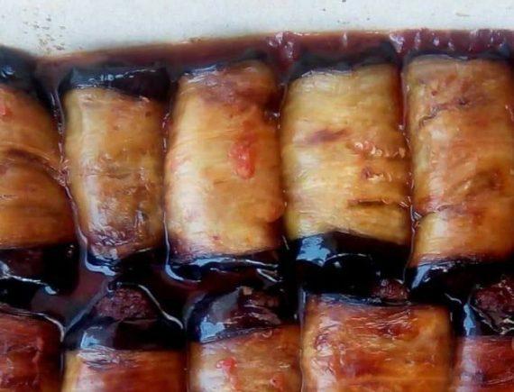 Βάζουμε σε ενα πυρίμαχο σκεύος ,πρώτα κάτω την σάλτσα ,περνουμε μια φέτα μελιτζάνας και τοποθετούμε στην ακρη της το κεφτεδακι ,ρολαρουμε και τοποθετούμε τα ρολακια που φτιάξαμε στην άκρη του ταψιού , με κλείσιμο προς τα κάτω. Κάνουμε την ίδια διαδικασία για όλα τα υλικά( φέτα μελιτζάνας με κεφτεδάκια) . Τοποθετούμε τα ρολακια το ένα δίπλα στο άλλο, χωρίς να αφήσουμε κενό μεταξύ τους. Ψήνουμε το φαγητό στους 180 βαθμούς, σε φούρνο με αέρα για 20 λεπτά. Άν δούμε κατά την διάρκεια του ψησίματος παίρνει παραπάνω χρώμα το σκεπάζουμε με αλουμινόχαρτο. Ενα γευστικοτατο πιάτο που θα ενθουσιάσει!!! Καλή μας όρεξη!!!!