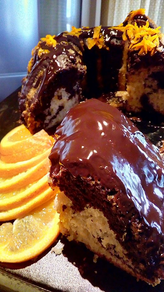 Χτυπάμε λάδι,ζάχαρη προσθέτουμε χυμό,κανέλα,και τέλος απαλά αλεύρι,μπεικιν! Διαχωρίσουμε λίγη ζύμη και προσθέτουμε 3 κουταλιές της σούπας κακάο! Βουτυρώνουμε την φόρμα και ρίχνουμε εναλλάξ λίγη λίγη την ζύμη! Ψήνουμε σε προθερμασμένο φούρνο στους 180 βαθμούς για 50 λεπτά!