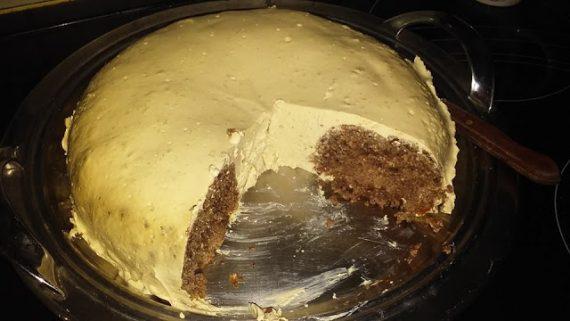 Παίρνουμε ένα ταψάκι μιας χρήσης (ή ένα ταψί στρογγυλό μεγαλύτερο από την φόρμα μας)βάζουμε μεσα λαδοκολλα και αναποδογυρίζουμε το κεικ..
