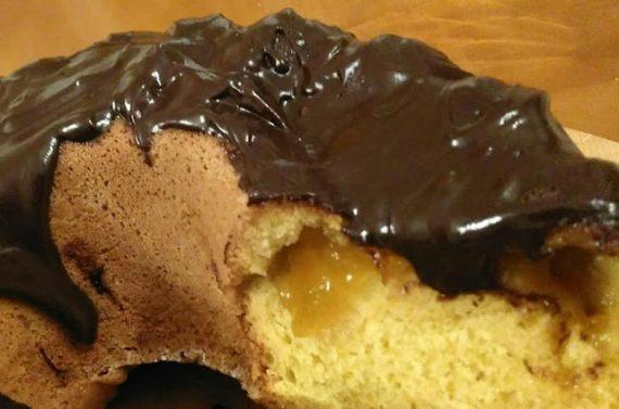 Αδειάζουμε το μισό μείγμα στην φόρμα βάζουμε μαρμελάδα στη μέση και προσθέτουμε το υπόλοιπο μείγμα. Ψήνουμε 1 ώρα σε προθερμασμένο φούρνο στους 180 βαθμούς.