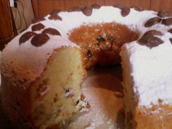 1 κουπα σπορελαιο 1/1/2 κουπες ζαχαρη 3 αυγα,1 κουταλακι μπεικιν 1 φακκελακι βανιλετα 3 κουπες αλευρι γοχ 1 κουπα corn flakes απλα 1 κουπα corn flakes σοκολατα 1 ποτηρι φρεσκο γαλα Για το γαρνιρισμα:ζαχαρη αχνη και corn flakes σοκολατα