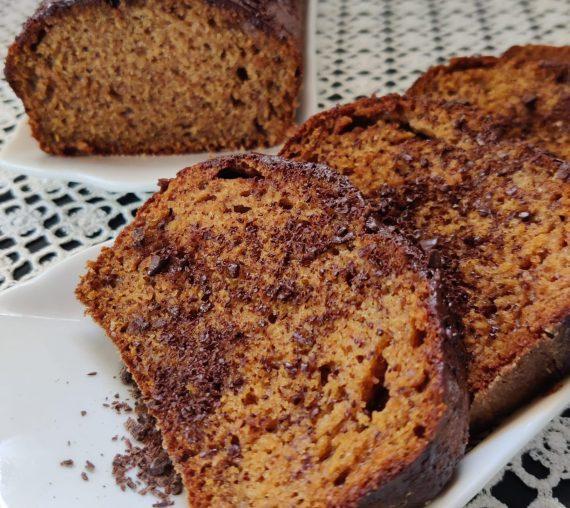 Συνταγή για Κέικ ολικής χωρίς ζάχαρη. Κέικ ολικής χωρίς ζάχαρη με μπανάνες, μέλι και μαύρη σοκολάτα στην επικάλυψη.