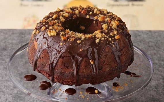 Μπισκότο Προθερμαίνουμε το φούρνο στους 180° C. Βουτυρώνουμε καλά και αλευρώνουμε μια φόρμα για κέικ διαμέτρου 24 εκ. Χτυπάμε στο μίξερ, με το φτερό, το βούτυρο με τα δύο είδη ζάχαρης μέχρι να αφρατέψει το μείγμα. Προσθέτουμε το αυγό και στη συνέχεια τα υπόλοιπα υλικά, εκτός από την κουβερτούρα. Οταν ενωθούν όλα, σταματάμε το μίξερ και ενσωματώνουμε την κουβερτούρα. Ρίχνουμε στη φόρμα λίγο από το μείγμα του κέικ. Ρίχνουμε από πάνω κουταλιές από το μπισκότο (φροντίζοντας να κρατήσουμε μια ποσότητα για το γαρνίρισμα) και αδειάζουμε το υπόλοιπο μείγμα του κέικ. Ψήνουμε στον προθερμασμένο φούρνο για 50 – 60 λεπτά. Βγάζουμε το κέικ από το φούρνο (δεν τον σβήνουμε) και το αφήνουμε να κρυώσει. Ντύνουμε τη λαμαρίνα του φούρνου με λαδόκολλα και αραδιάζουμε πάνω της κουταλιές από τη ζύμη για μπισκότα που έχουμε κρατήσει. Ψήνουμε για 30 – 35 λεπτά. Αφήνουμε τη ζύμη να κρυώσει και τη θρυμματίζουμε.