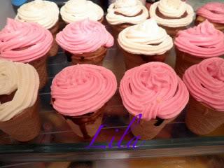 Στο μεταξύ μέσα στις θήκες των μάφινς στήνουμε όρθια τα χωνάκια.