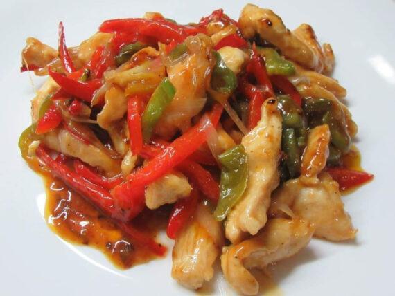 Συνταγή για γλυκόξινο κινέζικο κοτόπουλο με πιπεριές που μπορούμε να το απολαύσουμε με ρύζι, ριζότο λαχανικών ή και πατάτες,
