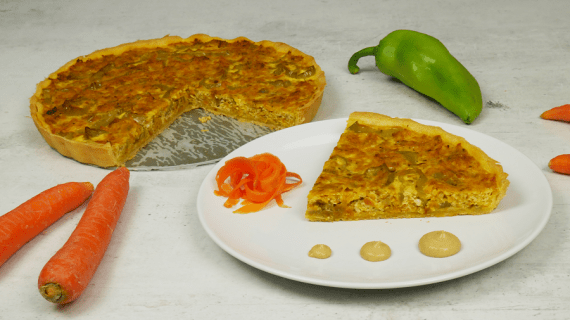 4 μεγάλα καρότα 1 κρεμμύδι 1 πιπεριά 1 κουταλάκι κύμινο 1 κουταλιά μουστάρδα Ρίγανη-Θυμάρι Αλάτι-Πιπέρι 250 ml κρέμα γάλακτος 3 αυγά
