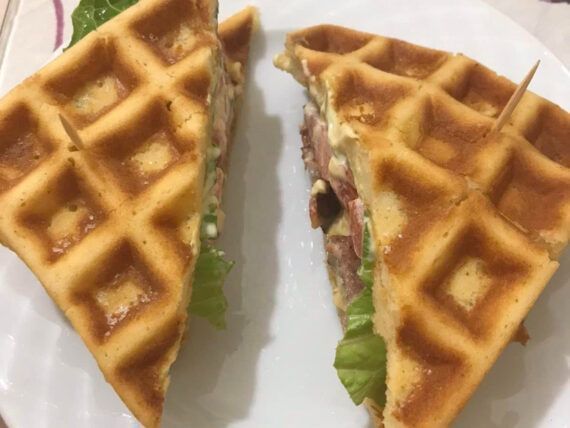 Συνταγή για κλαμπ σάντουιτς με βάφλες. Φτιάξτε κλαμπ σάντουιτς για το βραδινό από βάφλες με τα μπιφτέκια ή τα λουκάνικα που σας περίσσεψαν από το μεσημεριανό. Μία συνταγή της φίλης μας Elenfly Helenz.