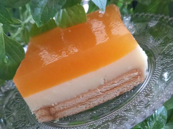 Εκτέλεση για το κλασικό μπισκοτόγλυκο με κρέμα και ζελέ ροδάκινο